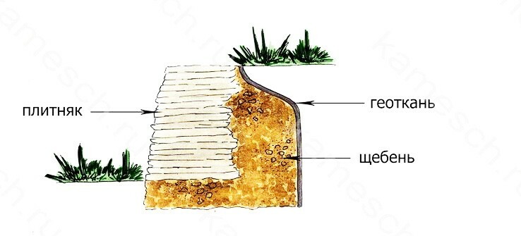 ПОДПОРНАЯ СТЕНКА-БОРДЮР ИЗ НАТУРАЛЬНОГО КАМНЯ